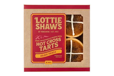 The Hot Cross Tarts (rsp: £5.25, box of four) are made with a shortcrust pastry case, deep filled with golden treacle and sticky spiced fruit, then finished with a hand-piped white cross.